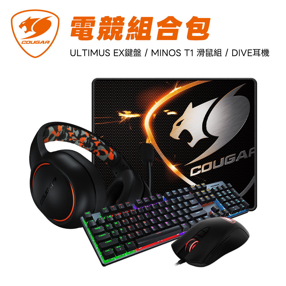 【COUGAR 美洲獅】電競組合 - Ultimus EX鍵盤+MINOS T1滑鼠鼠墊 +DIVE耳機