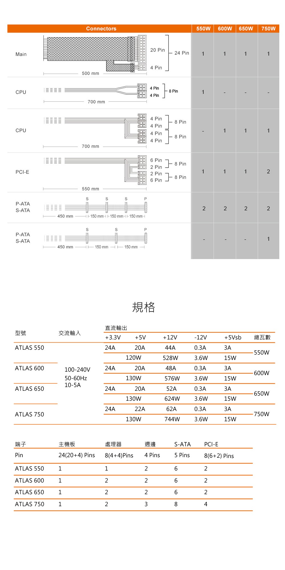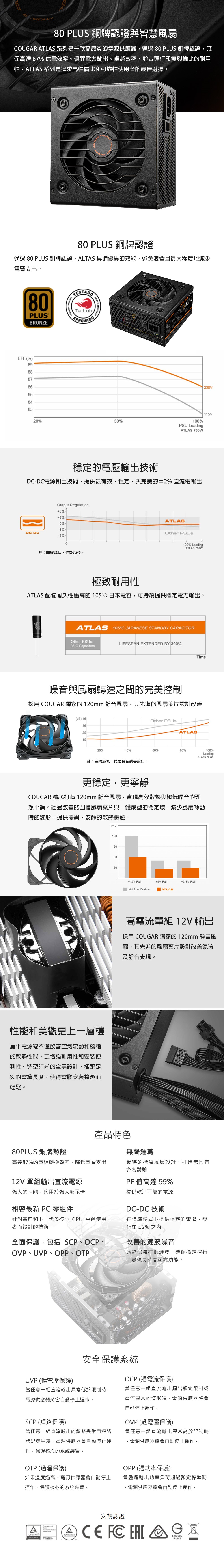 【COUGAR 美洲獅】ATLAS 750w 銅牌電源