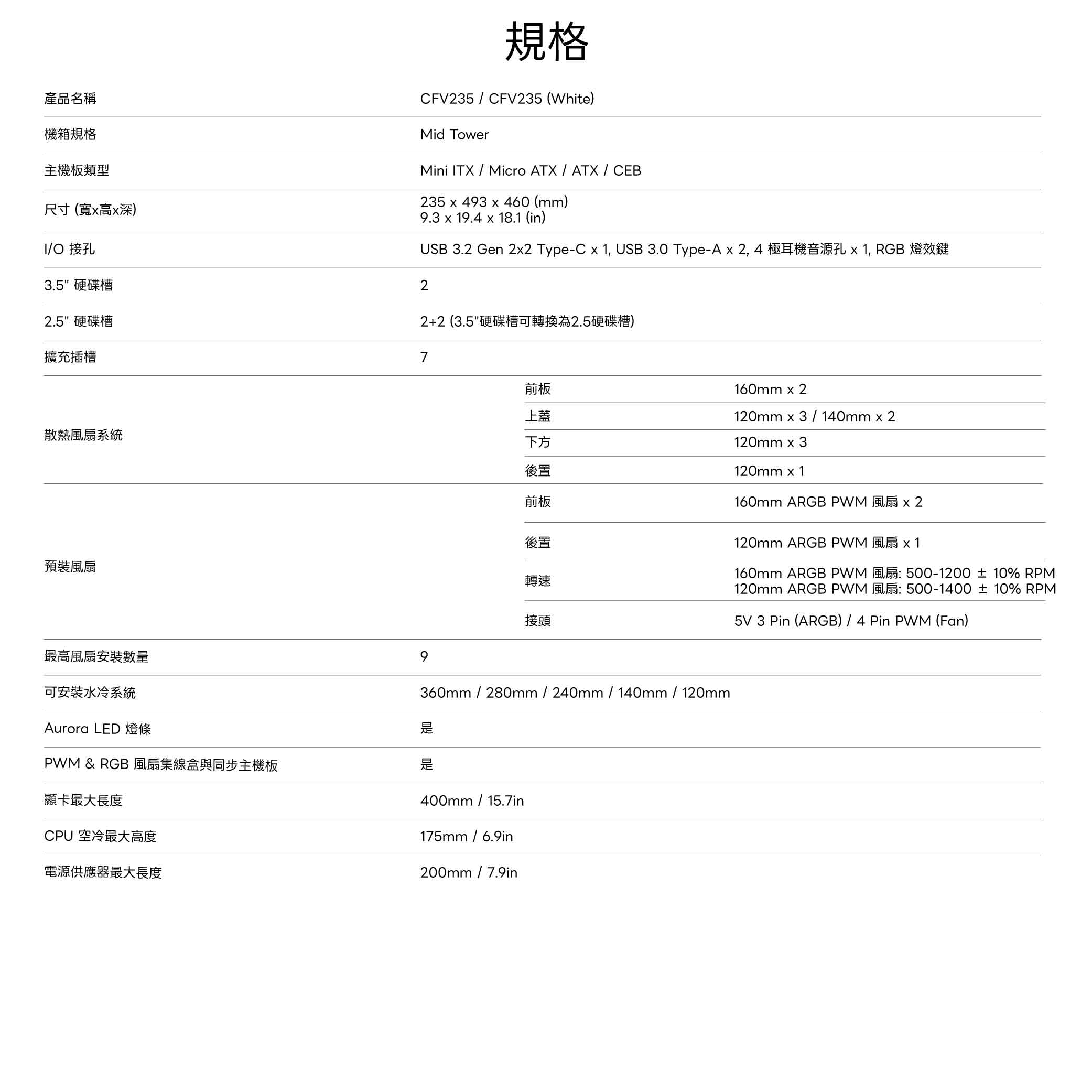 規格表