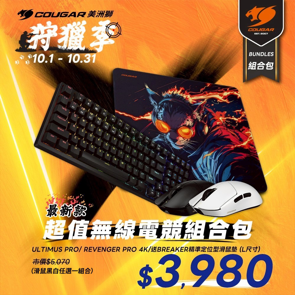 11月送L尺寸鼠墊!【COUGAR 美洲獅】鍵鼠組合 Ultimus Pro鍵盤+ Revenger Pro滑鼠